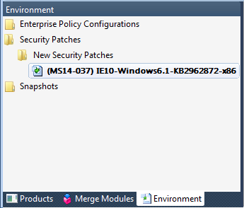 1. On the Home tab, open the Environment tree and select either the Security Patches group or one of its subgroups.