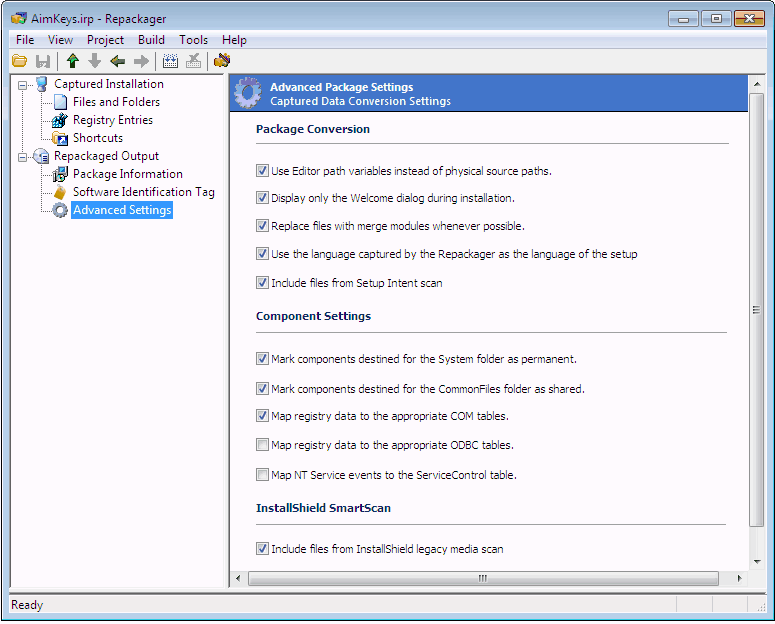 - In the Repackager interface, open the Repackager project that you want to convert to an InstallShield Editor project.