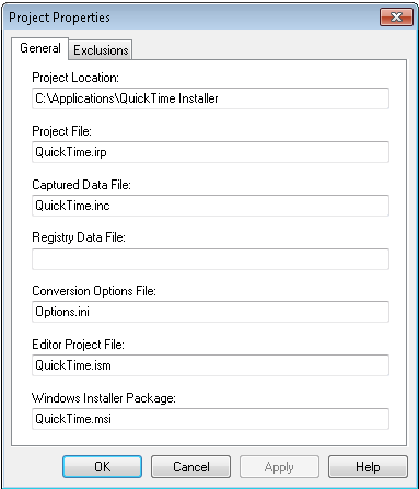 You can view the properties of the currently open Repackager project by opening the Project Properties dialog box.