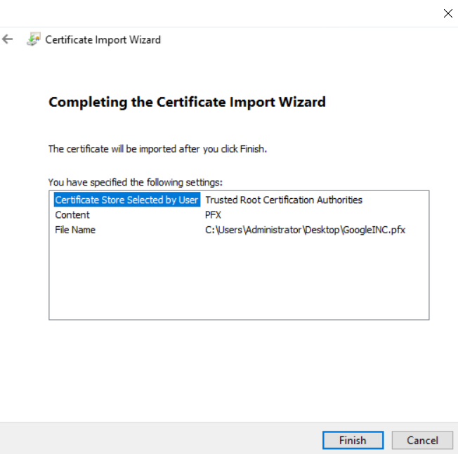 6. Click Finish to import the certificate. ![](/images/Certificate Import Wizard 5.png)