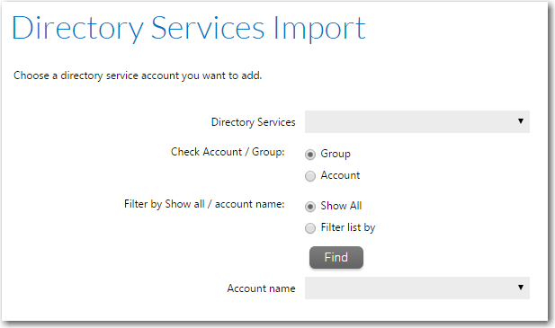 2. Click the Directory Service Import button. The Directory Services Import page opens.