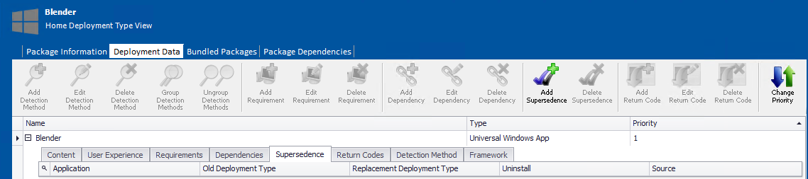 3. Click the Deployment Data tab and open the Supersedence subtab.